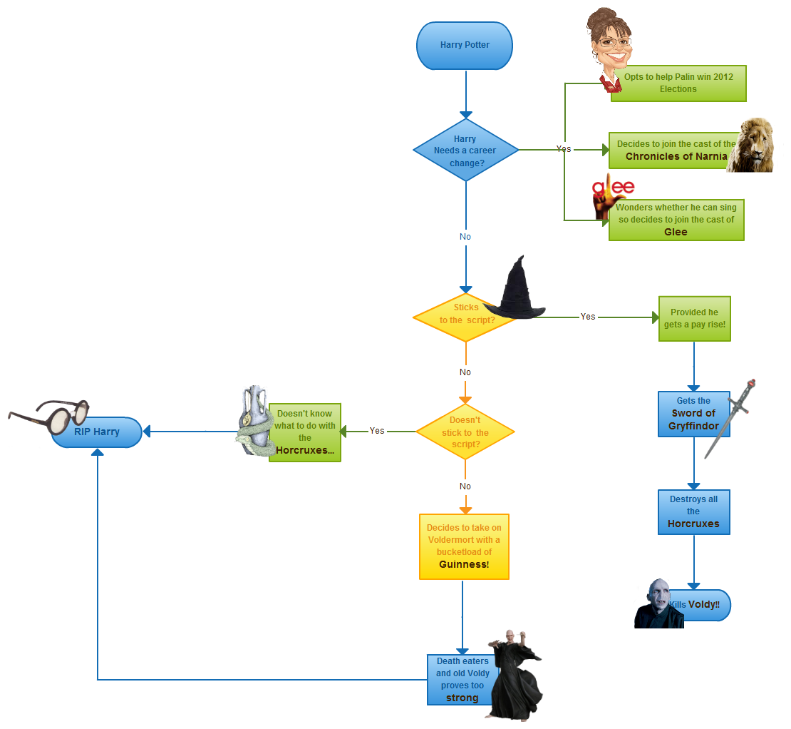 Harry Potter flowchart example Updated on: 1 June 2012 Join over thousands of organizations that use Creately to brainstorm, plan, analyze, and execute their projects successfully.Get started here Download our all-new eBook for tips on 50 powerful Business Diagrams for Strategic Planning. Get eBook Now More Related Articles No related posts.