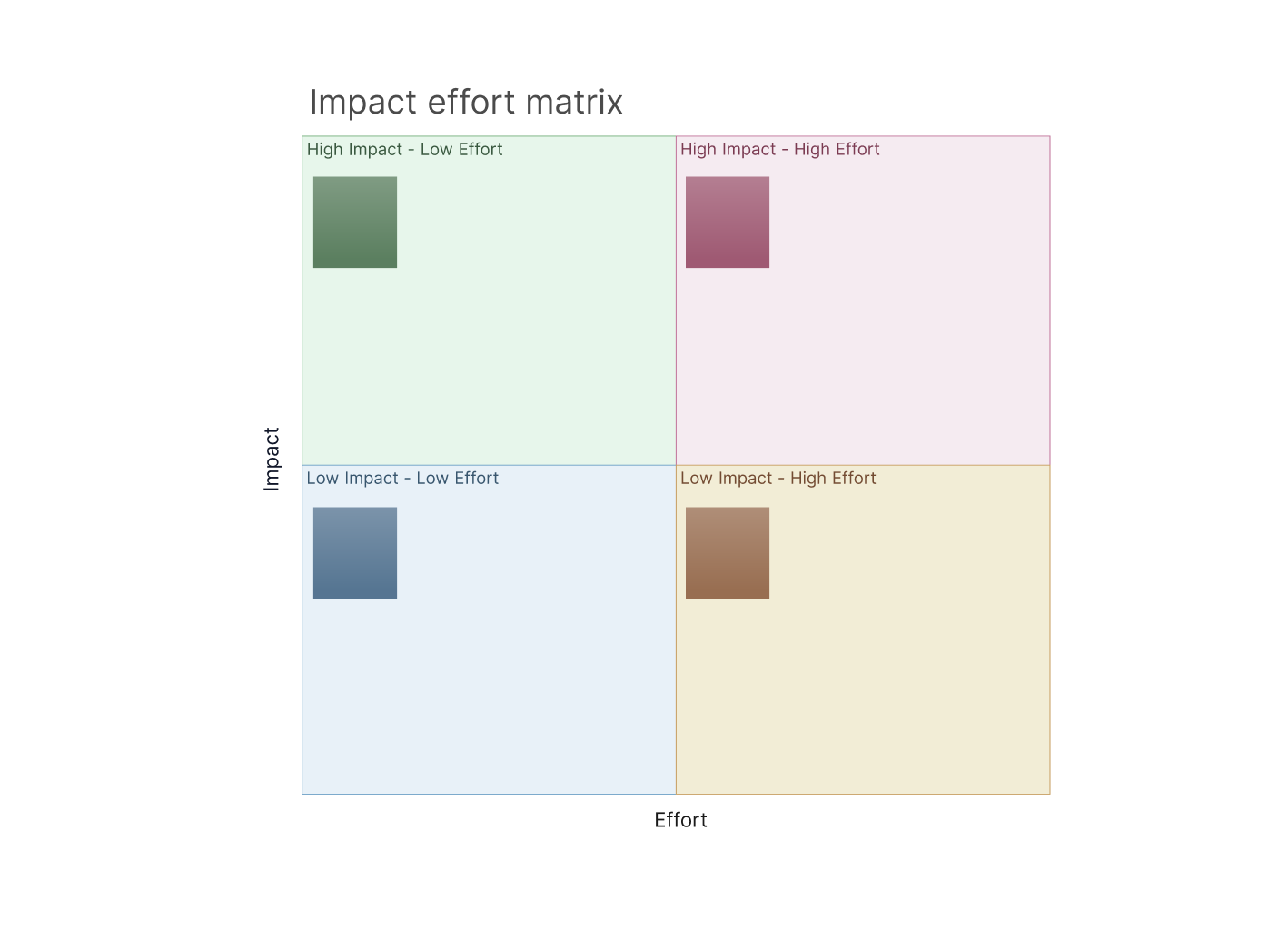 - Four labeled quadrants — High Impact / Low Effort, High Impact / High Effort, Low Impact / Low Effort, Low Impact / High Effort